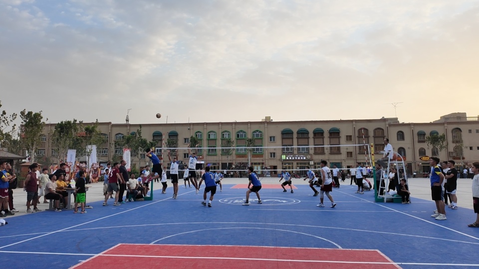 8月10日,“墨玉老城杯”男子排球赛在新疆墨玉县老城景区火热开赛。此次比赛吸引了全县各乡镇7支队伍共70名选手同台竞技。